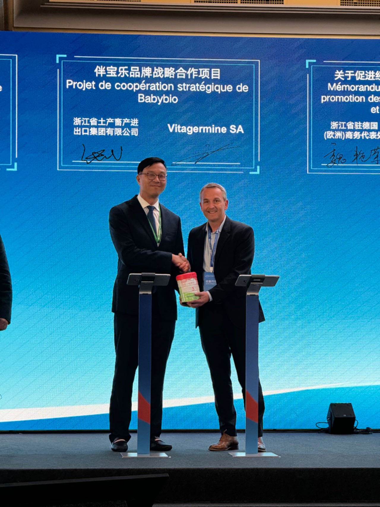 5月13日,浙江土畜參加浙江-巴黎大區(qū)高新產(chǎn)業(yè)創(chuàng)新合作對接會,與“伴寶樂”母公司法國創(chuàng)機(jī)然開展戰(zhàn)略合作洽談。在浙江省委易煉紅書記、集團(tuán)領(lǐng)導(dǎo)的見證下,張斌與伴寶樂CEO Ludovic BEGUE先生簽訂品牌戰(zhàn)略合作項(xiàng)目,未來5年浙江土畜向法國創(chuàng)機(jī)然公司采購進(jìn)口“伴寶樂”乳制品及嬰幼兒輔食產(chǎn)品1億美元。在法期間,張斌隨高秉學(xué)董事長拜訪法國創(chuàng)機(jī)然公司總部,前往伴寶樂位于法國南特的奶粉工廠考察,對法國乳制品、嬰兒奶粉等市場進(jìn)行調(diào)研。作為法國高端有機(jī)嬰幼兒食品第一品牌,法國創(chuàng)機(jī)然公司不僅樹立起在歐洲有機(jī)乳制品領(lǐng)域的標(biāo)桿,同樣引領(lǐng)著世界綠色產(chǎn)業(yè)發(fā)展方向,浙江土畜與法國創(chuàng)機(jī)然公司的深度合作將極大提升中國企業(yè)在有機(jī)食品領(lǐng)域的發(fā)展進(jìn)程。