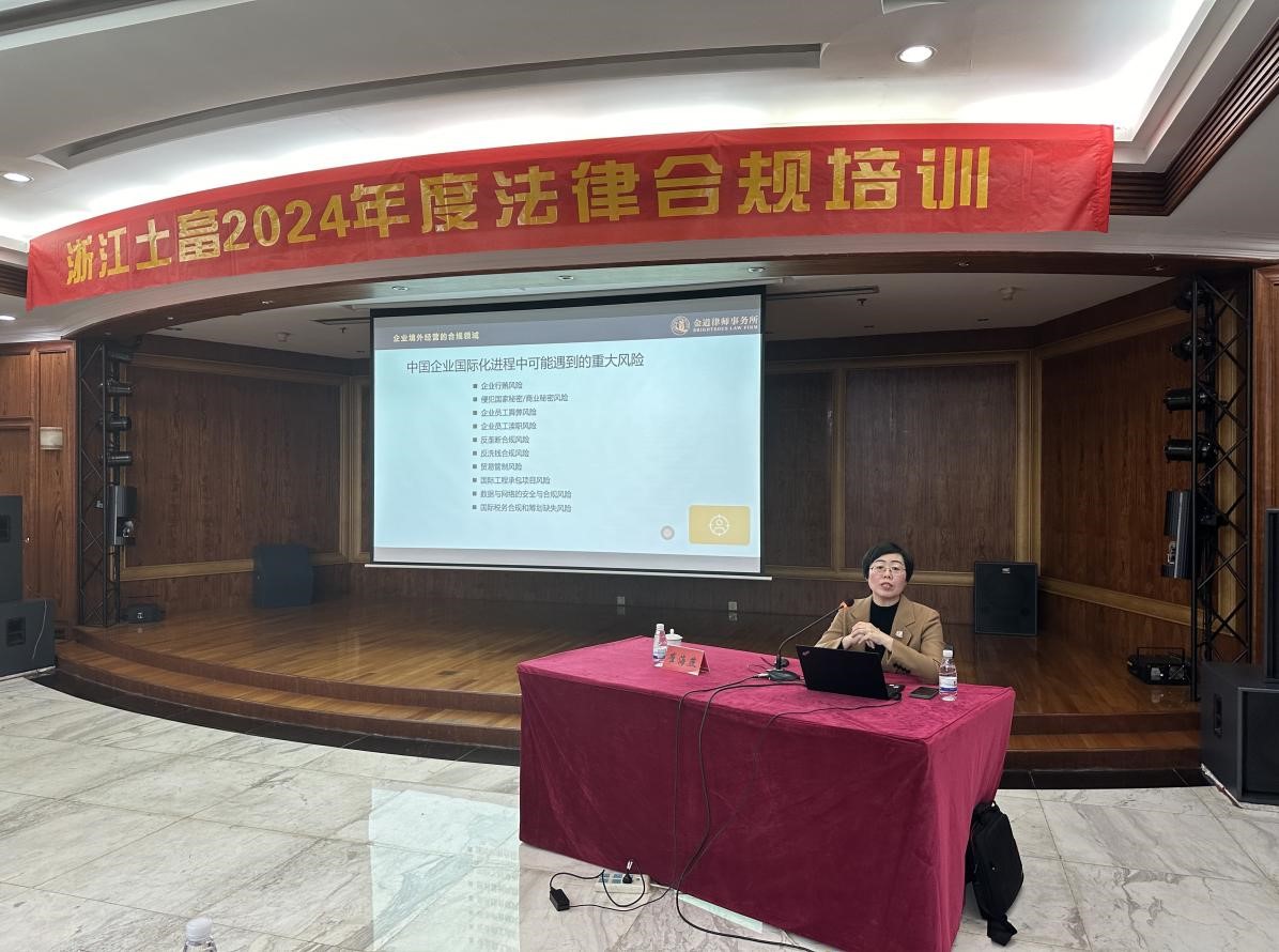本次培訓特別邀請浙江金道律師事務所管理合伙人、全國優秀律師、一級律師崔海燕律師作題為《國企合規管理體系建設的價值和要點解析》專題講座,系統性講授了合規管理的內涵理解、國有企業合規管理的體系搭建、跨境經營合規管理的要點、合規管理的價值評價和體現等,全面加深了公司員工對依法治企、合規經營的理解,增強了合規意識、樹立了合規理念。