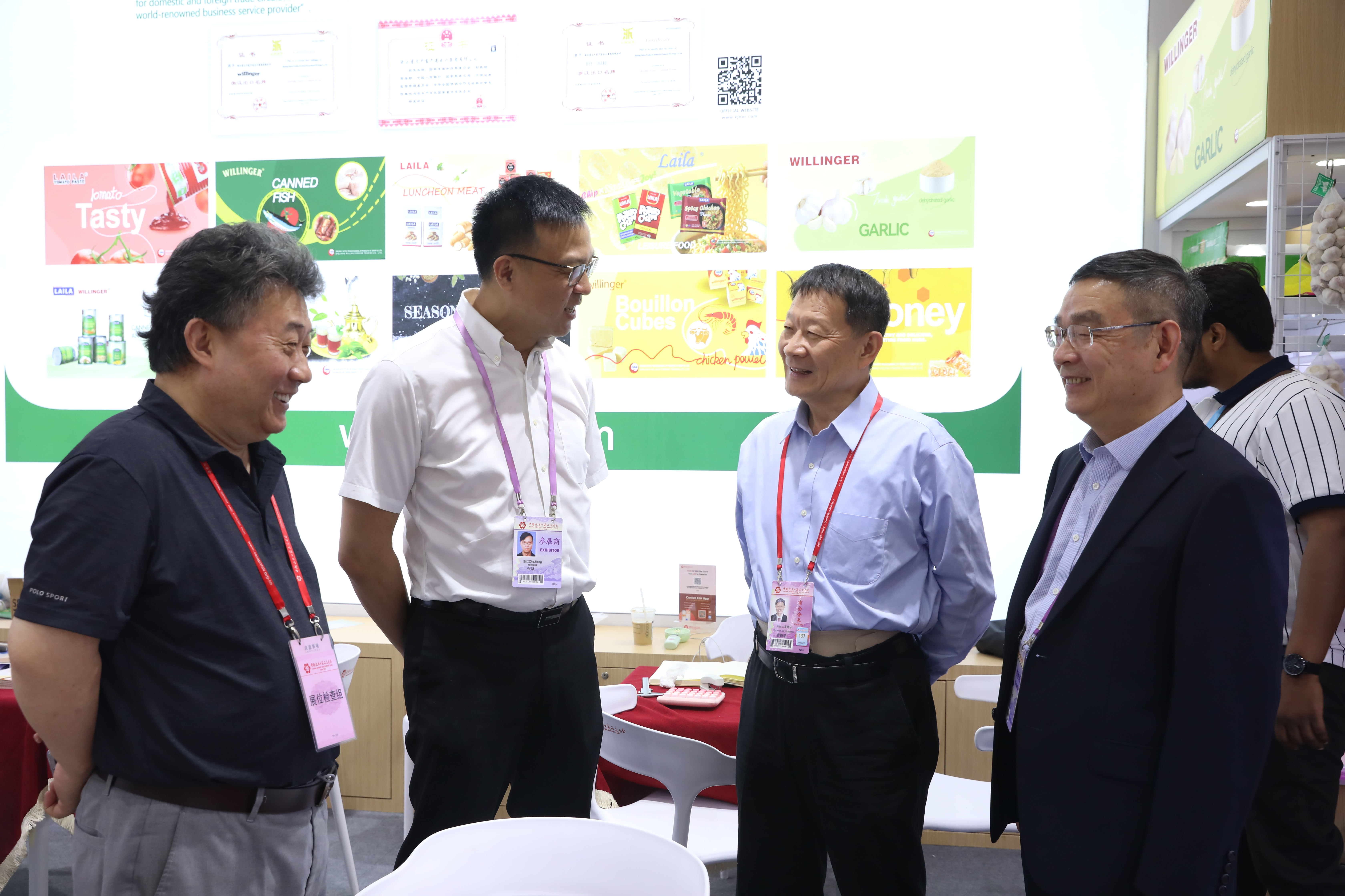 展會期間,省國貿集團董事長、黨委書記高秉學,副總經理、黨委委員張勇深入浙江土畜展位,詳細了解參展情況、市場變化和企業應對舉措。中國紡織品進出口商會會長曹甲昌、中國食品土畜進出口商會會長曹德榮先后走訪浙江土畜展位,就產品開發、訂單出運、當前外貿形勢等展開深入交流。