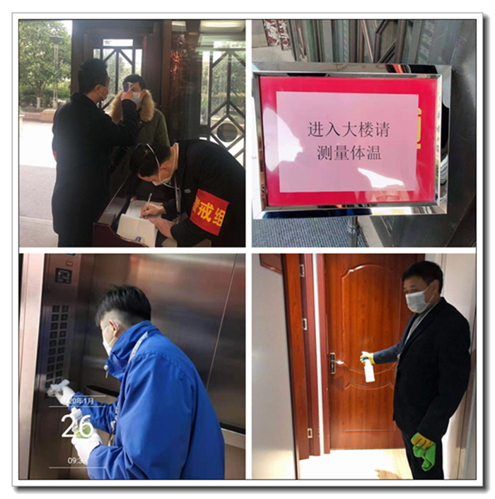 物業服務中心、華祥保潔在辦公室統一指揮下,全力做好大樓的防疫保障工作。門崗員工嚴格執行來訪登記制度,對全體進入大樓人員開展體溫檢測、詢問湖武漢、溫州、臺州等疫情區接觸史情況,并做好相關信息登記備查;落實專人每天對一樓大堂、前臺、電梯廳、公共衛生間、監控室等公共部位及重要值班場所,用消毒液每天進行環境消毒,并適當保持一定數量和時間通風工作,確保大樓環境安全。