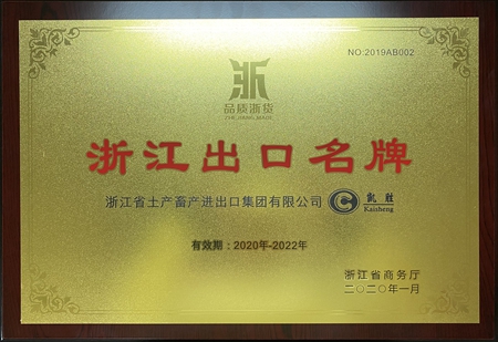 11月19日上午,省商務廳聯(lián)合杭州海關(guān)、省貿(mào)促會舉辦RCEP浙江省自貿(mào)協(xié)定政策宣講啟動儀式,“2019年浙江出口名牌”“2020-2021年度浙江外貿(mào)出口重點聯(lián)系企業(yè)”榮譽企業(yè)授牌活動同期舉行,浙江土畜總經(jīng)理楊躍勝出席并代表公司領(lǐng)獎。