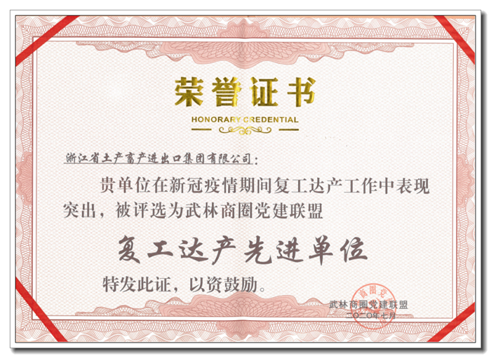 7月15日晚,杭州市武林商圈黨建聯(lián)盟舉行2020年年會,來自聯(lián)盟各成員單位的300余名黨員參加活動。大會表彰了在疫情防控、復(fù)工達產(chǎn)、黨建共建方面的模范單位以及在疫情防控工作中表現(xiàn)突出的先進黨員,省土畜被授予“復(fù)工達產(chǎn)先進單位”稱號。浙江省商務(wù)廳黨組書記、廳長,聯(lián)盟輪值主席盛秋平,杭州市下城區(qū)委書記劉穎出席會議,并為獲得表彰的單位和個人頒發(fā)證書獎杯。