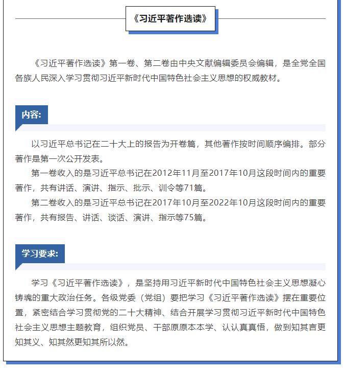 那么,如何加強黨的創新理論武裝?廣大黨員干部要認真讀原著、學原文、悟原理,深刻領悟習近平新時代中國特色社會主義思想的核心要義、精神實質、豐富內涵和實踐要求。深入開展主題教育,這幾種書是重要學習材料。