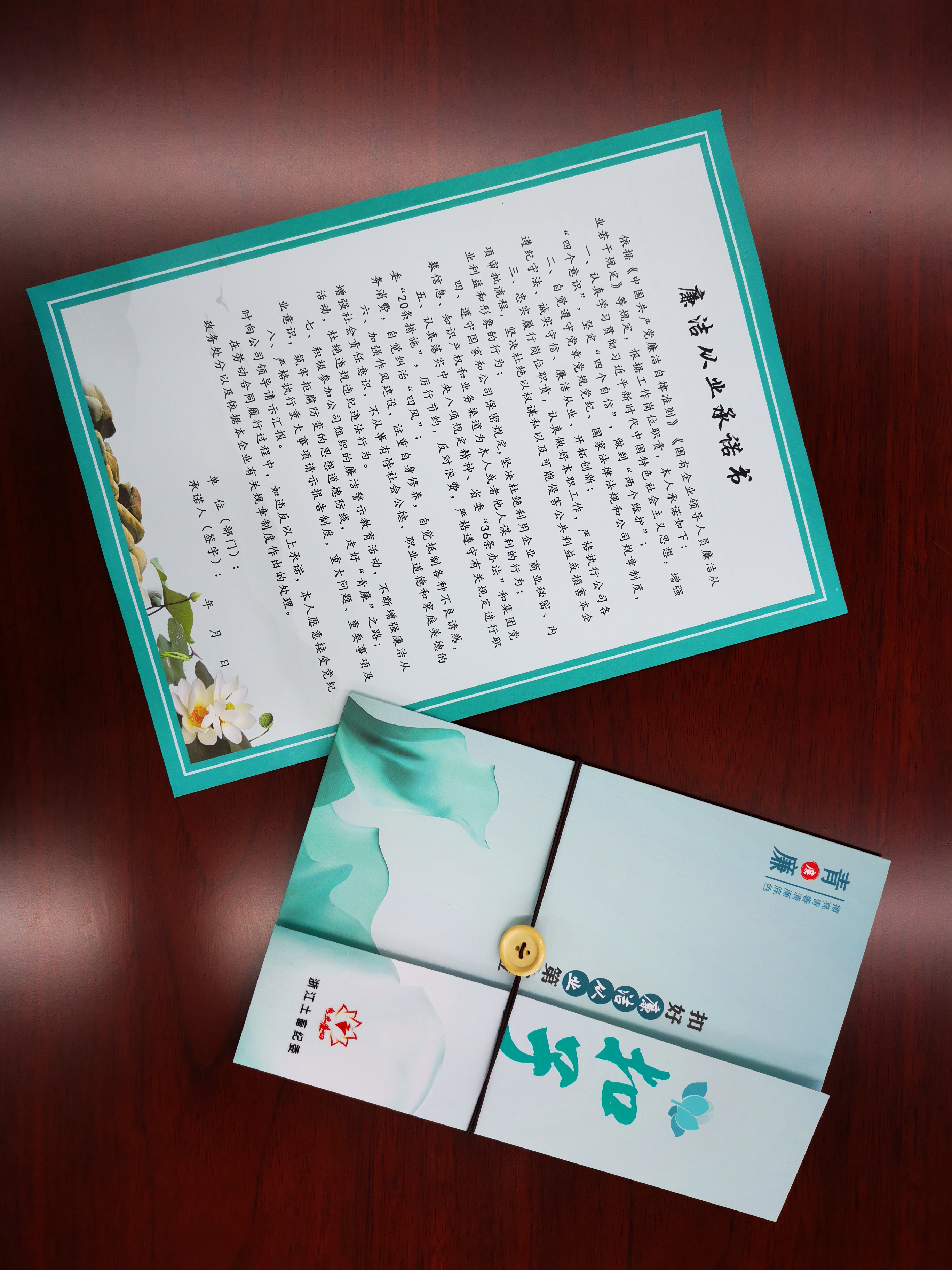 組織新員工簽訂《廉潔從業承諾書》,把好廉潔履職“入口關”,從源頭筑牢新員工廉潔從業思想防線,督促新員工嚴格按照承諾內容和要求,將紀律規矩挺在最前面,守好底線,不逾紅線,做到知敬畏、存戒懼、守底線。