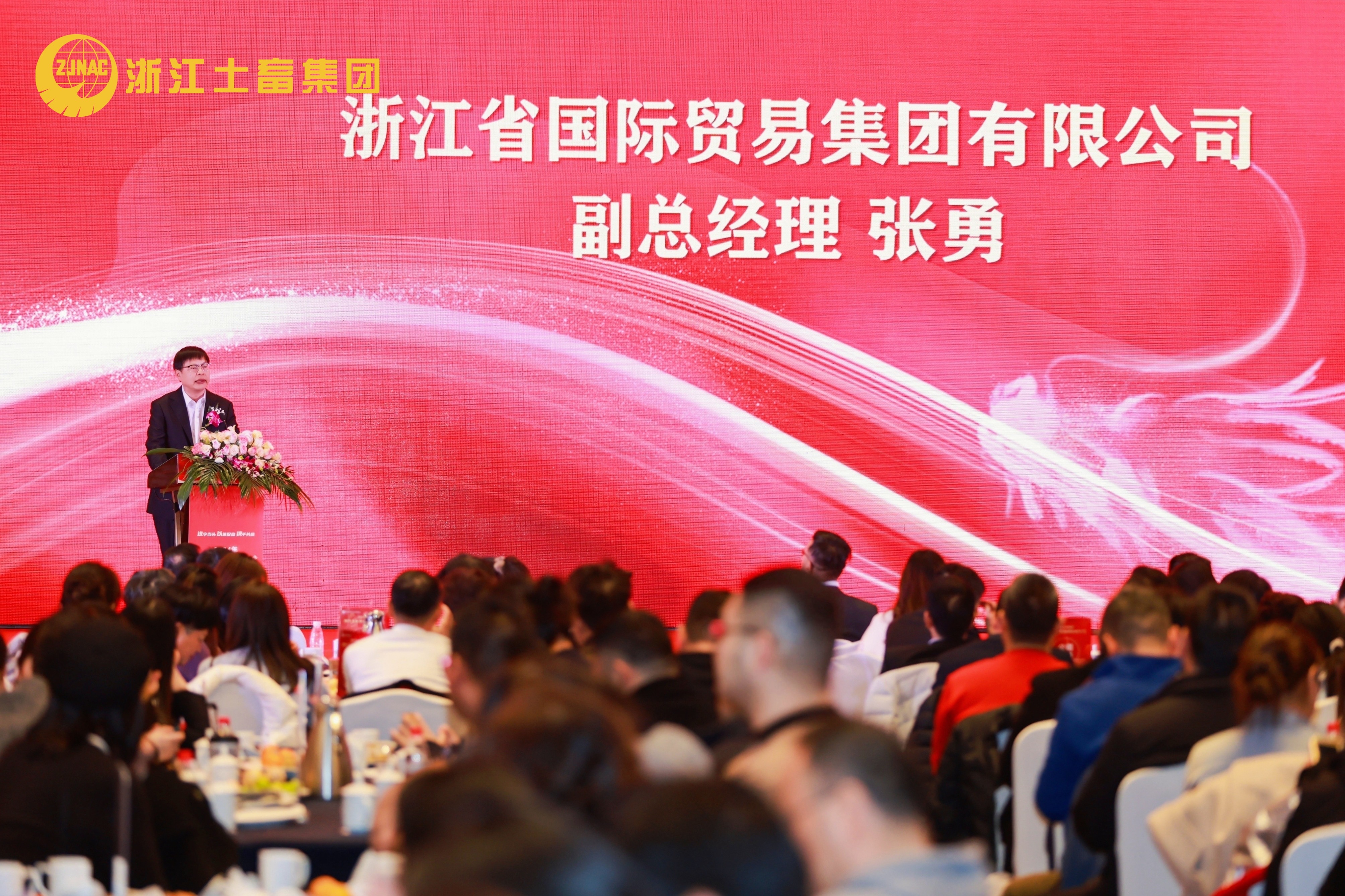 集團黨委委員、副總經理張勇重要講話。他指出,集團認真貫徹黨中央、省委決策部署,全面落實省委對集團提出的更高攀登、向更好挺進要求,主動融入中心大局、推動發展穩中求進,堅持強化改革創新、持續深化黨建引領,2023年外貿規模創7年來新高,獲評浙江省十佳外貿企業”“穩外貿成績突出集體等榮譽。浙江土畜作為集團商貿板塊旗艦企業,在穩外貿、優結構的道路上奮勇奔跑,引領商貿轉型。他希望企業家代表們與浙江國貿、浙江土畜乘勢而上,攜手共創新的輝煌。